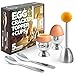 Complete Deluxe Egg Topper Set: Egg topper set has everything you need to make enjoying a perfect soft-boiled egg breakfast simple and easy. You get the precision soft-boiled eggshell opener, Egg Piercer Hole Seperater, sleek stainless steel egg cups and spoons.