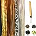 10 LONG SINGLE FEATHERS +HOOK TOOL AND 10 MICRO BEADS