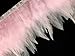 This is for 1 yard of light pink rooster hackle saddle feathers along a satin trim.