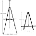 Easel Dimensions: 15" wide by 15" max depth by 21" max height; Collapsed 3.75" wide by 2.5" deep by 16" high. Folding support bar width 13.5" and bar tray depth 1". Weight 1 lb.