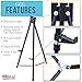 Showroom XL model heavy duty 70" high extra large black aluminum display and presentation easel stand with an adjustable telescoping tripod frame that supports up to 45 pounds. A premium lightweight 4 pound portable easel that quickly collapses down to 38" for storage and easy transportation.