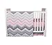 This 9 piece crib bedding features a cute pink and grey Chevron fabric and adorable elephants that are embroidered into various pieces throughout the set