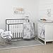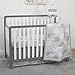 The NoJo Elephant Dream 8-Piece Infant Bedding Set features an elegant parade of silhouetted elephants and sophisticated geometric patterns in soft shades of light grey, charcoal grey and white.