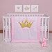 4 PIECE CRIB BEDDING SET INCLUDES: quilt, dust ruffle, fitted crib sheet, and plush animal toy. Bestow some royalty into your nursery with the Tiara Princess Bedding Collection by Sammy and Lou. With gold metallic applique tiara and diamond trimming, this bedding collection will surely add a hint of aristocracy.