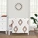 This cotton and brushed microfiber mini crib bedding set features a unique rust orange and ivory geometrical bohemian design with tufted trims comforter and two orange and cream modern chevron boho arrows print mini sheets with fully elastic bottom for secure fit. WILL NOT FIT STANDARD SIZE CRIBS.