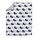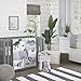 The NoJo - Blue/grey elephant 4-piece infant Bedding set features an elegant parade of silhouetted elephants and sophisticated geometric patterns in soft shades of blue, grey, and white.