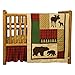 ·Comforter: The generously sized quilt at 43 by 34 inches, features a woodland theme with mountains, bears, and moose in an elegant patchwork display. The forest style of this collection is too charming not to fall in love with
