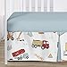 This set boasts a fun coloring book inspired truck print, a coordinating tire print, and solid fabrics