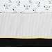 Gray stripe crib skirt with a black border and yellow velour flange