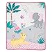 SAFARI THEME: This charming modern baby girl crib bedding with frolicking safari animals makes a cheery addition to any nursery. On the front of the animal bedding quilt, it's a balancing act for elephant, bear and hippo, as their giraffe friend watches the fun. The baby crib quilt reverses to a polka dot print. The fitted crib sheet and changing pad cover have an all-over animal print. A gray and white color palette is accented with aqua and yellow, making this girl crib bedding ideal for a girl or boy.