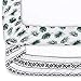 BOTANICAL THEMED DESIGNS – 2 pack crib sheet set with an assortment of jungle inspired leaves in shades of green and grey look vibrant on a crisp white background in one sheet, while a sweet diamond stripe in black and white fill the background on the other.