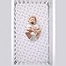 This crib sheet is designed in shades of Pink, White, Tan and Grey