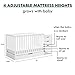 GROWS WITH BABY: Four adjustable mattress positions that can be lowered as your baby begins to sit and stand
