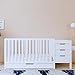 3-IN-1 CONVERTIBLE CRIB WITH STORAGE: Converts from baby crib (mattress sold separately) to toddler bed (toddler guardrail sold separately), and daybed; Attached storage unit includes 3 drawers and 2 open storage cubbies; Assembly required