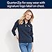 QUARTER-ZIP PULLOVER – This women’s pullover sweatshirt features a reduced shoulder width for a flattering feminine fit. Plus, the body width and length are increased by about 1” for a roomier, relaxed fit.