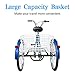 COEWSKE tricycle has a foldable large rear basket, load up the conveniently basket with groceries, supplies, or whatever suits your daily shopping while staying in shape. Large rear basket with 2.8 cubic feet/79 L Capacity.