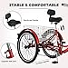 【High Quality Material】: our 26 inch trike has three high quality rubber tires, sturdy and easy to ride; padded seat with backrest for more comfort and safety; bike seat can be adjusted to meet your exact needs