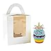 Beautiful Cupcake Box: 3 different window types are carefully designed to meet your various matching needs; There is a clear window on the top to display your delicious pastries and keep them fresh, you won't forget what you put in the box; The window is glued firmly, don't worry about falling off