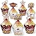Safe to Use: our grad cupcake toppers and wrappers are made of quality sturdy cardboard with a glossy finish, food grade materials and safe to use; Each cupcake wrapper measure approx 3.6 inch (top diameter) x 2.2 inch (bottom diameter) x 2.4 inch (height), and the cupcake picks measure 2.8 x 3.6 inch (including stick); Please note that the cupcake wrappers are only for decoration purposes cannot put into the oven