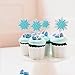 SNOWFLAKE FROZEN ring cupcake toppers, matching baking cup liners in blue snowflake / silver foil, and 4 beautiful coordinating larger 4" decorations for the tabletop