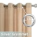 8 matte silver grommets per panel; inside diameter for curtain rod measures 1-5/8" - panel sewn with 4" heading; 3" bottom hem