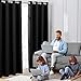 Package Includes: 2 black curtain panels, each blackout curtain measures 52 inch wide and 84 inch length constructed with 8 silver grommets measuring 1.6 inches inner diameter .