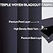 Strengthened Blackout Fabric: 2 layer weave solid build fabric with black liner backing balances room temperature by blocking out 85 - 95% sunlight and uv rays, providing a natural barrier against natural elements, noises, and disturbing peeks