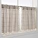 -- Boho Kitchen Curtains with Tassels-- This tan tier curtain features classic embroidery lattice pattern on soft cotton linen fabric with cute fringe trim edge, add a touch of modern and bohemian style to your room, which made your room pop.