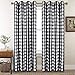 Each set contains two 100% Gingham Check tab top window curtain panels, each measuring 50" x 63", Black and White Curtain
