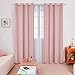 Package Includes: 2 pink curtain panels, each blackout curtain measures 52 inch wide and 84 inch length constructed with 8 silver grommets measuring 1.6 inches inner diameter .