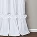 The unlined panels have lovely, semi-sheer breathability and a breezy charm, created by 24" of generously gathered ruffles on the bottom of the curtain. The luxurious, ruched fabric brings a feminine touch and stylish upgrade to your window, adding cozy softness and romantic flair. No header adds a bit of modern simplicity and a rod pocket and fabric loops offer two hanging options. Matching fabric tiebacks provide you with a choice to pull back the drapes if desired. Set/2.