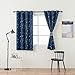 Package Content: 2 panels double-layer star and moon cut-out curtains per package. Each panel is 52" wide x 84" long with 2 tie backs and 8 silver grommets (1.6" diameter) to elegantly treat your windows, which makes the curtains easy to install and slide.
