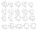 20 different designs - snowflake, gingerbread, Christmas stocking, Santa Claus, reindeer, bell, Christmas tree, snowman, sweater, bulb, glove, candy cane, angel, bowknot, house, gift, Christmas elf, cake, holly berries and snow globe.