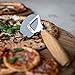 CONTENTS: stainless steel and oak wood pizza cutter