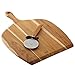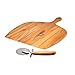 Two-piece pizza prepping-and-serving set features beautiful teakwood peel and handle construction; cutter blade made from durable stainless steel