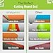 TOP CHOICE OF CHEFS FOR VEGGIES, CHICKEN, FISH, FRUITS & MORE! Each pack contains color coded cutting boards to avoid cross contamination. No surprise that even professional chefs choose our precision cutting boards. The special texture makes sure that knives won't dull while cutting, and you can use them for all food types including cheese, bread, sandwich, pizza, fruit, etc.