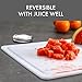 Integrated juice well: this cutting board is reversible- one side features an integrated juice well for collecting fruit or meat juices in use