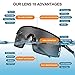 Interchangeable lenses - All lenses are for sport sunglasses, blocking harmful UVA and UVB light. Restores true colors, eliminates reflected light and scattered light, making the scenery clearer and softer, perfect for eye protection. The main part of outdoor cycling glasses is colored lenses; gray is polarized for driving and other activities; yellow is night activities. (Only one of the grays is polarized)