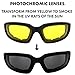 Wraparound design: protects the eyes from wind and bad weather, provide enhanced peripheral vision. Please note, photochromic lenses lenses cat. range 1 to 3 (this is the perception of the color of the lenses but thanks to the polarization the protection factor proceeds from cat 2 to 3) react to UV rays and will not darken when worn behind an helmet visor or windscreen that blocks UV light. They must be exposed to direct sunlight to initiate