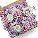 [Package Includes] This purple theme artificial flower box contains roses, peonies, gardenias, daisies, as well as filler flowers, eucalyptus leaves and other greeneries.