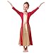 ❤❤ BASIE HOLY DRESS: Elegant metallic gold color block praise dance dresses for girls, liturgical lyrical long sleeve round neckline loose fit robe full length maxi swing gown pleated ruffle tunic circle skirt ballet worship dancewear costume, shiny metallic inserts, simple and classic, ideal for celebration of spirit praise dancing, holiday church dance, and special events