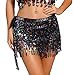 ✨Package Contents: 1 shiny sequin skirt for women. Above knee belly dance hip scarf is a good choice to wear by yourself, the unique feminine glitter skirt is also a great gift for your family and friends.