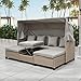 Multifunctional Patio Rectangle Sunbed : Our patio wicker sunbed set has a retractable canopy, enjoy your summer time with a bottle of icy beer and a shady canopy! Upgraded daybed with 7-position reclining backrests on both sides, and it can accommodate three positions at the same time, and the custom angle can better support your back and legs for a luxurious leisure experience with your friends and family.