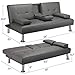 【Convenient designs】For ease of use, this convertible sofa has a drop-down table with two cup holders to hold drinks and snacks when you enjoy your leisure time on it. The two small throw pillows made from the same materials as the sofa offer extra support for your lower back or head.