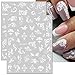 You will get 10 sheets glitter silver french tip nail stickers 3d heart star flame butterfly nail art stickers, metallic curve stripe lines nail decals suit for nail designs decorations