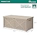 LARGE STORAGE SPACE- 120-gallon capacity results in a roomy storage solution for your garden tools, pool supplies, sporting equipment, etc., on patio, deck, or porch; Featuring 440lbs. weight capacity, this waterproof outdoor storage box can double as an extra table or patio bench to accommodate two adults.