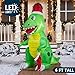 6 Feet Tall Dinosaur Holding a Christmas Stocking Inflatable comes with an extended cord, ground stakes, fastened ropes, built-in sandbags, and a plug with UL certification.