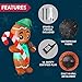 6 Feet Tall Ginger Man Holding Candy Cane Inflatable comes with an extended cord, ground stakes, fastened ropes, built-in sandbags, and a plug with UL certification