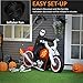 BADASS HALLOWEEN FUN: This 7.5 ft long inflatable yard display features the Grim Reaper riding a motorcycle shooting flames while welcoming all trick-or-treaters, ghosts, and ghouls with a wicked smile.