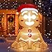 [ Lighted Christmas Inflatable Gingerbread Man Cookie ] The Christmas inflatable sitting Gingerbread Man wears a Christmas hat. Set includes a 3.5 Ft tall inflatable Gingerbread Man, 4 plastic ground stakes, 1 weight bag, 2 tethers, a plug and built-in blower.